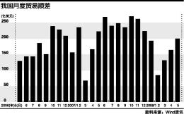 根据海关总署上个月公布的数据,今年1~5月,中国出口5450.5亿美元,增长22.9%;进口4670.3亿美元,增长30.4%。累计实现贸易顺差780.2亿美元,比去年同期下降8.6%,净减少73.2亿美元。