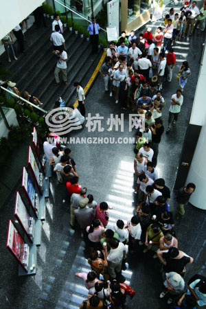 昨天下午1点多,众多杭州市民头顶烈日赶往银行,为的就是想要换购到北京奥运会的10元面值纪念钞。
