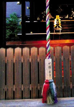 和京都及附近的众多神社庙宇相比,晴明神社实在是袖珍之极,也略逊古风。院中有小小石桥一座,名一条戾桥,其实只是原桥的微缩品。甚至有专供游人摄影用的白色屏风。上面画着晴明御鬼的场景,面部故意作圆形镂空,留待游人露出面容来扮成晴明或小鬼。实在是太旅游了些。而这复原的神社里也总让人感觉太新,太干净,纤尘不染的石板上连青苔都没有,总还是有些遗憾的。
