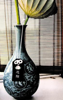 神社外简朴的桔梗庵中,出售各种晴明的护身符。除了友人相赠的那款,这里还有众多从最普及的交通御守到考试通过的保护符,不一而足。浏览这些护身符的说明,就相当于看本搞笑的奇幻小说了,日本人的认真细致也在这里发挥到了极致。如最有趣的“除魔贴”——“红蓝两枚一组的护符,贴在家门上或门柱上、机动车或头盔上。贴在车前可以防止追尾,相反贴在车后可以避免被撞”;最特别的该是“桔梗护符”,浅粉底色的锦缎,上面绣着紫色的五瓣桔梗花,娇柔纤美之极,而且每年只在7至9月神社内的桔梗花开时才有售。真是典型的既娇且贵,和其他护身符的硬朗风格截然不同,就像是小说里那些娇弱美丽、善解人意的女式神一样。