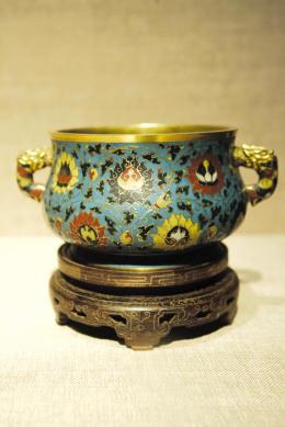 掐丝珐琅现在也叫景泰蓝,据说景泰时期作品很好,但目前真正见到的好作品还不多。掐丝珐琅的起源有很多说法,大体在元代时期,中国传统工艺受到外来文化影响。但是元代作品,我们知道的也很少。最早有宫廷时期的,就是宣德时期掐丝珐琅。存世的明代宣德时期掐丝珐琅作品也是故宫很重要的作品,宣德时期掐丝珐琅炉具有很大的代表性。现代的掐丝珐琅大体上沿用了古代的技术。