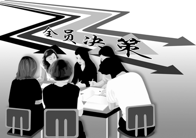 管理大师杰克·韦尔奇认为,公司管理者不应管理得太多而领导得太少。为此公司应实行“全员决策”管理制度,使那些平时没有机会相互交流的职工、中层管理人员都能出席决策讨论会,人人参与公司管理工作。《中国质量报》