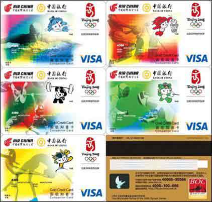 国航知音中银VISA奥运信用卡是国内唯一的奥运信用卡金卡,5张卡面上分别印有五色动感福娃,其核心功能主要包括“双卡合一、双重礼遇”。