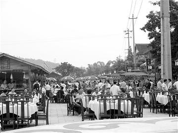 据经营该啤酒广场的钟老鸭老板钟怀智介绍,他们投入了100多万元,在黄龙溪河边的榕树滩啤酒广场上摆放了300多张桌子,搭建了舞台和食品操作房。菜品除熟食、中餐和烧烤系列之外,还有叶儿粑、鸭肉粥、冰银耳等小吃;舞台是整个啤酒广场的亮点,节目表演与游客互动游戏和抽奖穿插其中。他说,这种啤酒广场其实是把市内的酒廊和演艺吧搬到了景区和室外,环境更为舒适,美食更加丰盛,价格更加便宜,但又比普通的啤酒广场更有档次和品味。