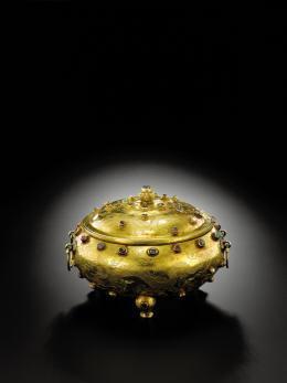 明宣德 金胎錾“赶珠云龙”纹嵌宝石三足盖炉 |
