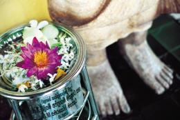 塔下偶有小贩兜售礼佛花卉,其中偏以蓝色睡莲与沙罗树花居多。前者为斯里兰卡国花,生于浅水,遍布各地,花瓣如星光,绿叶似薄云,集真理、纯洁、自律诸象征于一体。后者乃相伴佛祖涅槃之木所生葩华,丰润若佛掌微张,由洁白而微黄而淡红,若有心剥尽蕊、瓣,可见花托之上天生具体而微一座佛塔。