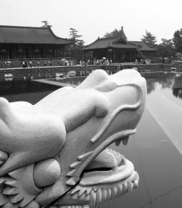 作为唐玄宗和杨贵妃的寝宫,飞霜殿也无时无刻不在诉说着历史。传说,在冬季寒冷的空气中,骊山温泉的水汽在这里凝成了无数个美丽的霜蝶,故名飞霜殿。这里现在像博物馆一般陈设着这两位著名历史人物的蜡像,以及烘托两人欢娱时浪漫气氛的粉色纱蔓绸缎和精美物什。而在纱蔓之外的墙上,悬挂着唐代历任皇帝的介绍却一再告诫着人们,这段历史上令人炫目的帝王之恋,最终的结果,却是毁了盛世和这个皇帝的一世英明。他的子孙,唐代最后一任皇帝,唐哀帝正垂头丧气,无奈地接受着历史的选择。
