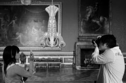 一些到博物馆的游客,看到库恩斯的作品呈现于这个17世纪神圣宏伟的宫殿之中,似乎有很多疑问。他的作品的戏谑性,和凡尔赛宫的大理石墙壁、天花板画、大理石雕塑、吊灯以及350多个镜像是多么格格不入。