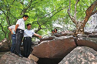 陈建林陪同洛阳市市委书记连维良(左一)观看千年古檀