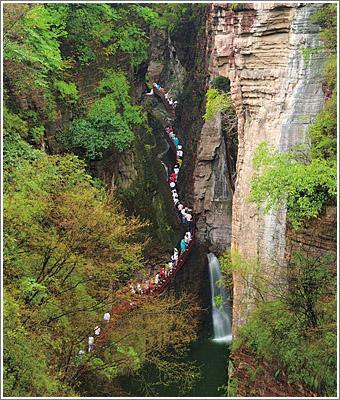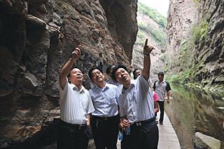 洛阳黛眉山世界地质公园分为龙潭峡、荆紫山、黛眉山、青要山、万山湖5个景区,是一座以峡谷地貌、水体景观为主,典型的地质剖面、地质工程景观为辅,以生态和人文景观交相辉映为特色的综合性地质公园。陈建林领衔开发的就是这座公园的核心景区--龙潭大峡谷。