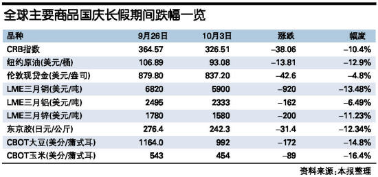 附表 全球主要商品国庆长假期间跌幅一览