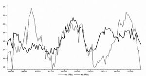 9月份数据显示,我国M2增速继续高于M1增速,反映当前投资意愿低迷,消费受到抑制,居民储蓄持续上升并且存款定期化加剧,M1、M2剪刀差扩大,对银行息差和资产质量构成巨大压力,也使银行的避险意识增强,低风险的贴现票据贷款受到青睐。分析人士认为,银行股难有趋势性机会。