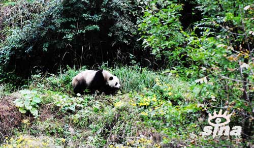 新浪财经讯 10月28日下午4:50时,四川省唐家河保护区组织参加野外职工摄影摄像培训活动的一行6人,在蔡家坝保护站站长何万红和摄影师邓建新带领下乘车从区内返回青溪镇,在青溪镇阴平村大堰上附近(距青溪镇不足1公里),发现河对岸有只大熊猫。
