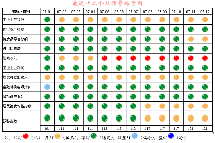 宏观经济景气指数预警信号图(2007年12月)