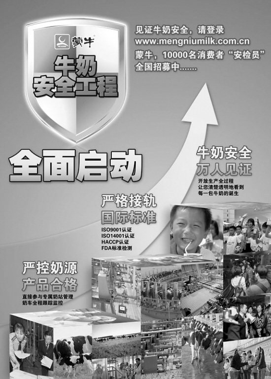亿万家庭共见证:蒙牛启动“牛奶安全工程”