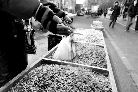 记者在二经街和一经街附近走访了3家炒货摊,发现最便宜的瓜子每斤6元,多为奶油和五香口味,现炒瓜子每斤8元至13元不等。一家炒货摊摊主告诉记者,从今年9月新瓜子上市开始,价格就比去年高了不少。“进价涨了两块钱,炒瓜子再不涨价我们就赔本了。”二经街的一位炒货摊摊主告诉记者,今年生瓜子批发价每斤在5元左右,这个价格比去年同期贵了一到两元钱。据该摊主估计,随着两节的临近,炒瓜子的价格可能还会涨。对此,一位正在称瓜子的市民告诉记者,这瓜子再贵,也比超市里卖的袋装瓜子便宜,而且一斤就贵个一两块钱,价格还比较容易接受,比起其它的炒货或各种坚果,瓜子算便宜的了,不会因为涨价就不买。