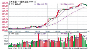 截至昨日收市,上证国债指数已连续六个交易日收出阴线,而此前债市走出了一轮强劲的牛市上涨行情。尤其是自今年9月份以来,上证国债指数从113点上涨至最近的119.82点的最高点。