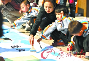 本报讯 (记者王广永、刘艺明 通讯员杨慧敏摄影报道)“爸爸,什么是孝啊?”“孝是我们中华民族的美德,要孝顺父母、孝敬长辈,时刻都要有一颗感恩的心!”前天上午,第二届罗村孝德文化节开幕。明媚的阳光中,一百名来自罗村中心幼儿园的小朋友,在父母的陪伴下,描画出一幅百米长画,父母们还不忘给孩子传递自己对孝道的理解和体会。