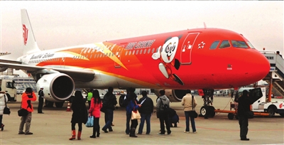 当天,机身喷涂有卡通大熊猫和“太阳神鸟”艺术图案的中国国际航空公司西南分公司空客A321“秀美四川”号彩绘飞机,搭载乘客首航飞往北京,这标志着“秀美四川”号正式投入航班运营。 新华社发