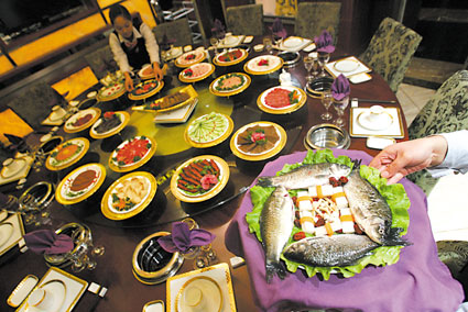 秦妈火锅老板秦远红表示,为了推宴席,店里每一个菜品都经过了“艺术加工”,如每一个月君花都被雕切成了雏菊;鸭肠经过装点被梳理成花状。而刘一手火锅则把毛肚做成甲板状,安放在像船一样的盘子里。奇火锅老板余勇称,现在正在四处招专管菜品样式设计的“出品总监”,同时还开出比普通墩子高2~3倍的价钱招聘“摆盘专人”。