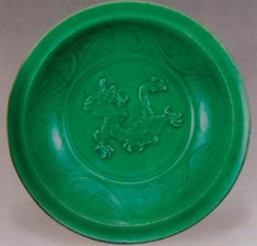 这块残瓷外腹壁刻菊瓣纹,内心坦底贴雕龙头凤尾纹及绣球,苍龙及绣球皆系同瓷盘坯泥片堆贴后,作雕、刻、划、剔等,使纹饰高于胎体,挂釉后营造了纹饰玉质釉彩下,映现出浮雕效应,烧成之器物清纯流翠、釉色莹润、纹饰俏丽。
