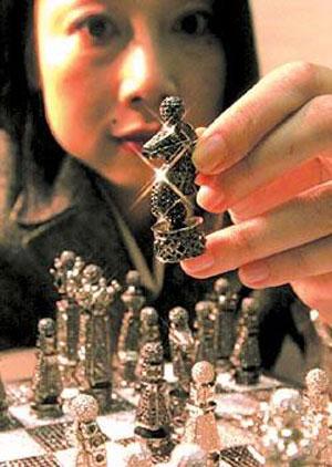 2005年,法国著名艺术家和珠宝设计师伯纳德·马昆设计出这款皇家钻石象棋,堪称世界上最贵的象棋。30多名能工巧匠在马昆的指导下,花了大约