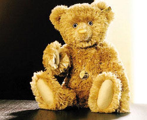 德国著名的玩具商史蒂福公司为庆祝公司成立125周年,玩具专家们精心制作出世界上首只黄金绒毛泰迪熊。熊宝宝的嘴由纯金制作,毛皮是用金线缝制而成,眼睛的瞳仁用蓝宝石镶嵌而成,而虹膜则是由20枚细小的钻石精心编织起来的。黄金绒毛泰迪熊每只售价高达8.6万美元(约合人民币64.6万元)左右,全球限量销售125只。