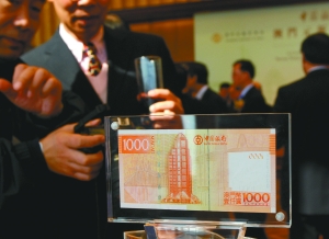 根据澳门特别行政区第20/2008号行政法规,中国银行澳门分行获准发行1000澳门元、500澳门元、100澳门元、50澳门元、20澳门元、10澳门元新版钞票。