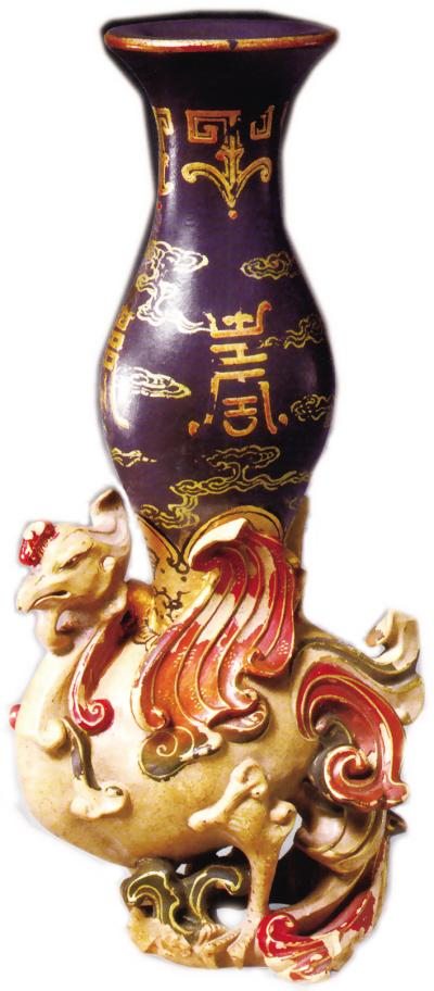 宜兴窑描金彩绘天鸡尊 清乾隆