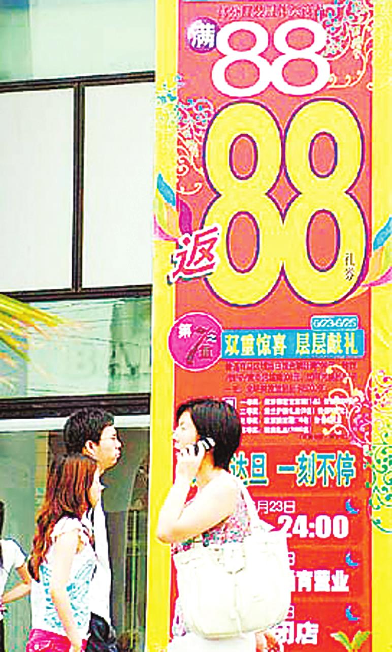 业内人士称,从长期看,促销活动的负面作用较大,不是商场提升销售额唯一的途径。打折促销是一把双刃剑,适当、适量地运用能促进销售,提升客流量,有效赢得市场占有率;反之,则会让消费者养成依赖心理,不折不买,商场陷入“促销怪圈”,引发恶性循环,不利于品牌、企业长远的发展。