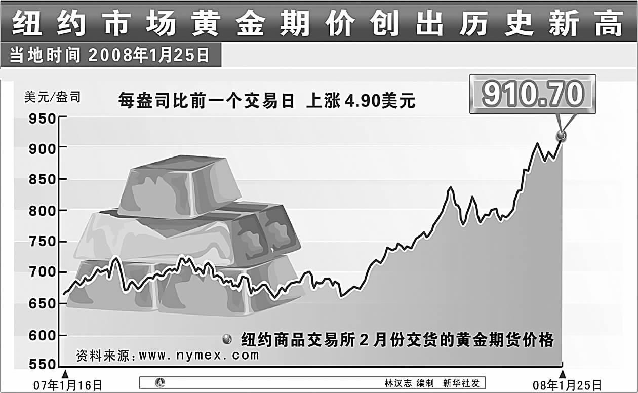 纽约市场黄金期价创出历史新高 中华工商时报 2009.02.1800:18 关注 由于传出南非一些大型金矿停止生产的消息,上周最后一个交易日纽约市场黄金期价创出历史新高,2月份交货黄金期货价格盘中价格一度达到924.30元/盎司。最终收盘于910.70元/盎司,比上一交易日上涨4.90美元。