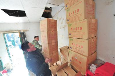 右图:成箱的假茅台整装待发。图为被异地封存的假冒茅台酒。