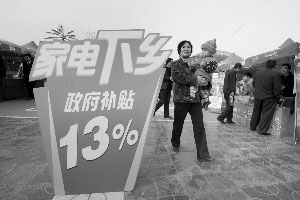 农民在家电下乡中购买彩电、冰箱等产品,将得到销售价格13%的财政直补。图为甘肃省皋兰县“家电下乡”活动现场 新华社 图