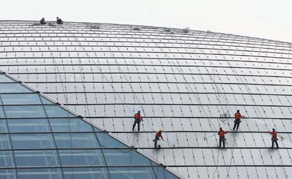 北京“蜘蛛人”给国家大剧院“洗脸” 喜迎两会郑雄增 摄