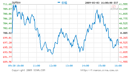 新浪财经讯 主要股指周二振荡剧烈,最终低收,美股已连续第五个交易日下跌。道指与标准普尔500指数均创下多年新低。标准普尔500指数自1996年10月来首次跌破700点大关,政府官员在国会的证词并没有提振投资者的信心。