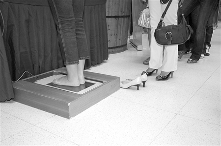 据了解,当人的脚放上“量脚器”之后,机器将自动记录脚的长度,传输到电脑,最后出来一份数据,精度达到0.02毫米。而“足底压力传感器”则是对人的脚进行压力分布测验,结合量脚后数据分析,让接受测试者在买鞋的时候轻松找到最适合自己的款式。