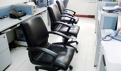 笔者走访发现,各大家具卖场转椅种类繁多,价位在百元到千元不等。价位较低的转椅腿大多是塑料做的,拿上去比较轻。“这种便宜的转椅后面只有一个小块铁扣,质量不好,顶多能用1年。”一位经销商指着一个价格在150元左右的转椅向笔者介绍:“质量好的转椅价格都在250元以上,椅子后面都有一层很厚的铁板,绝对能保证安全。我们现在卖的都是液压升降的转椅,里面有液压油,比那种气压(升降型转椅)的要安全多了。”