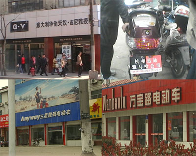 在中国电动车生产最集中的江苏无锡安镇,很多品牌都挂上了雅马哈、铃木等监制的字样,更有甚者,直接叫“三星数码电动车”,“万宝路电动车”。