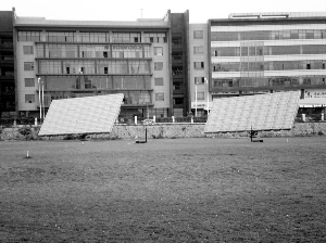办公楼后的太阳能聚光系统