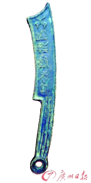 读者:这枚刀币(见右图)是不是真品,收藏价值高不高?