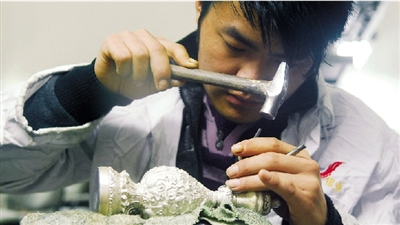 记者走进白银第一坊工艺品加工车间,工人贾艳丽正在打磨一樽叫做“蒸蒸日上”的银质酒杯。她说,自己已经习惯了游人手中相机的“咔嚓”声和各种赞叹声。