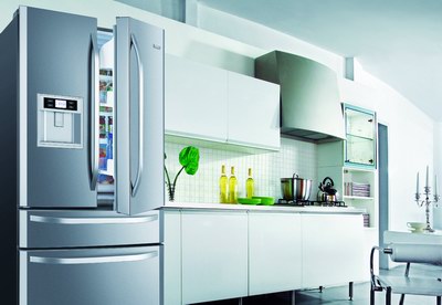 从外观上来看,传统对开门冰箱一直沿用左右开门设计。由于在结构上从未有新的突破,导致后来各企业制造传统对开门冰箱时,只能是简单地变换门体颜色、手把等,而海尔法式对开门冰箱却是全新的外观设计——打开上面的对开门设计,看到的是一个完整的冷藏空间。