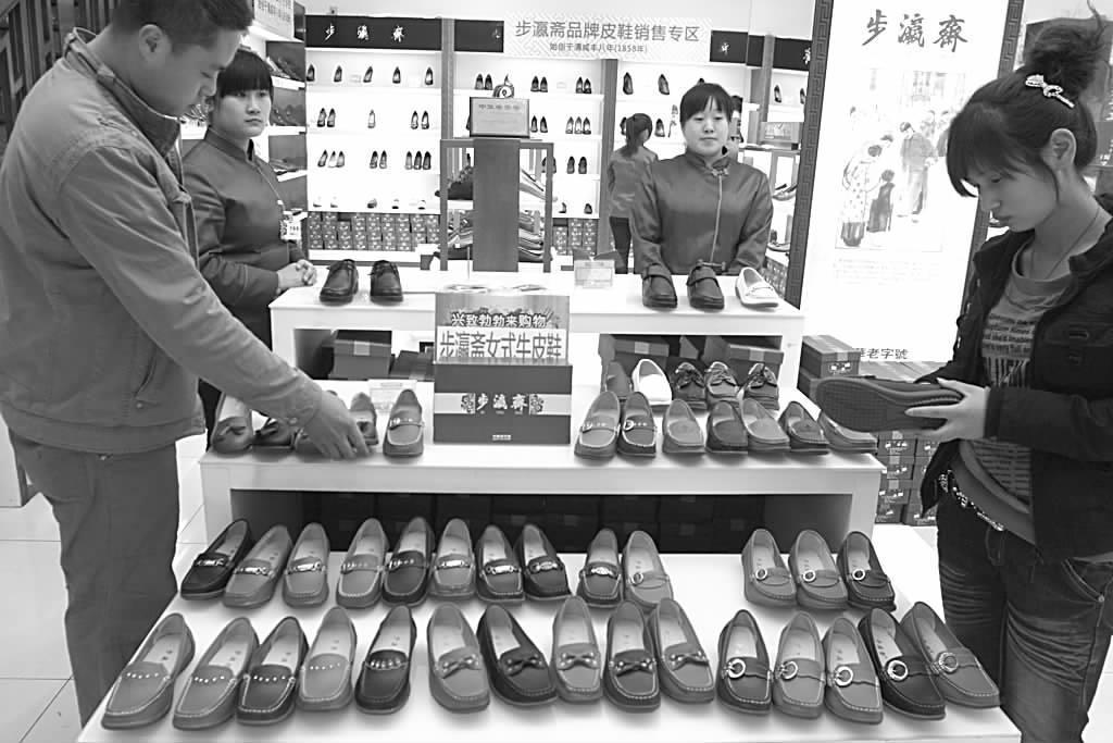 走出都一处大门,正对着便是大栅栏商业区。这里的景象要热闹很多,记者走进步瀛斋鞋店,本想与售货员了解一下销售情况,但是发现,店内来往顾客应接不暇,每位售货员都在忙着接待顾客,记者看到一位60多岁的老者正与家人选购商品,老人家买了一双喜爱的千层底布鞋,而他的儿子则选中了一双款式新颖的两接头皮鞋。“前门开街后,让我们的销售额起码增加两成。步瀛斋是我们的地儿,不存在租金的压力,但如果从大栅栏走出去,在前门大街租个门面扩大经营恐怕就难办了。”步瀛斋的刘亚洲经理平静中带着几分庆幸谈了他对目前前门商业圈的看法。“根据市场的变化,满足不同消费者的需求是步瀛斋的经营宗旨,虽说步瀛斋有150多年制作销售布鞋的历史,但我们2007年根据市场需求,弘扬步瀛斋老字号的百年信誉,推出100来款步瀛斋牌男女皮鞋,受到顾客认可和欢迎,保持诚信传统,不断研发丰富新产品,才让步瀛斋在激烈的市场竞争中经久不衰”。
