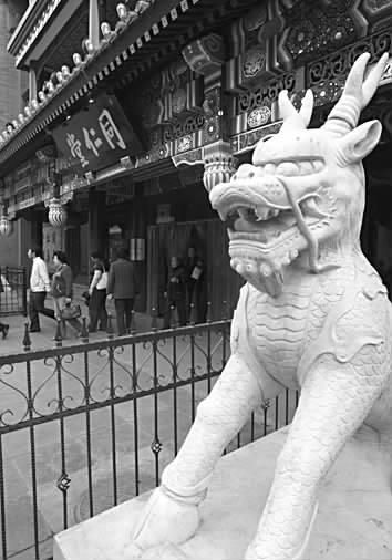 记者注意到,修缮后的前门大街,宽敞、规整了许多,典雅古朴的青白石路,古色古香的店铺牌匾、别致的鸟笼路灯以及各家店面前的“历史老照片”、铜像雕塑等到处再现古都风貌。