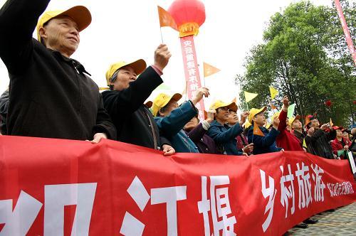 4月8日,都江堰市民参加首届乡村旅游节。当日,四川都江堰市在当地安龙镇徐家林盘启动“2009相约都江堰·首届乡村旅游节”。此次乡村旅游节不仅有乡村音乐会、生态农产品品尝展示、民俗体验等活动,还推出了五条乡村旅游线路,包括乡村休闲游、农民新村观光游、生态农业观光游等,让游客切身感受到“都江堰安然无恙,青城山依然美丽”。新华社记者 刘海 摄