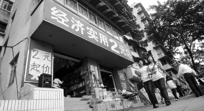 昨日,国际村,市民走过经济实用2元店记者 欧阳祖兵 摄