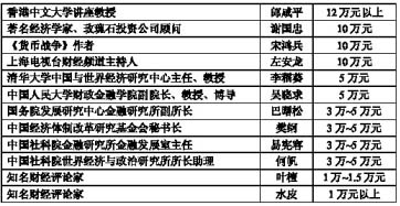 部分经济学家出场费一览表