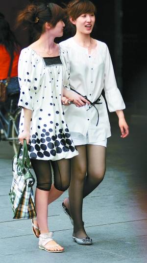 本报讯(记者杨滨 实习生赵莹莹)及膝短裙或牛仔短裤,配上黑色长筒丝袜和一双平底鞋,这是今夏北京街头最IN的搭配打扮。黑色丝袜,在沉寂了多年之后,又重新受到时尚达人的追捧。