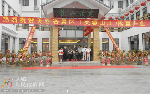 参加庆典活动的市、区领导共同为芙蓉山庄开业剪彩,并游览了芙蓉谷景区。