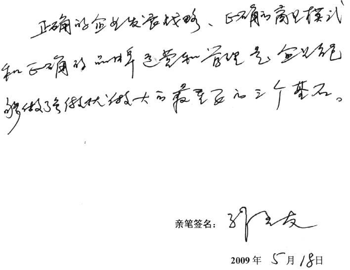 5月18日,鹰牌控股有限公司(新加坡上市公司)执行董事、总裁张孟光先生向中国品牌与传播大会组委会发来寄语:“正确的企业发展战略、正确的商业模式、正确的品牌运营和管理是企业能够做大做强的三个重要基石”!